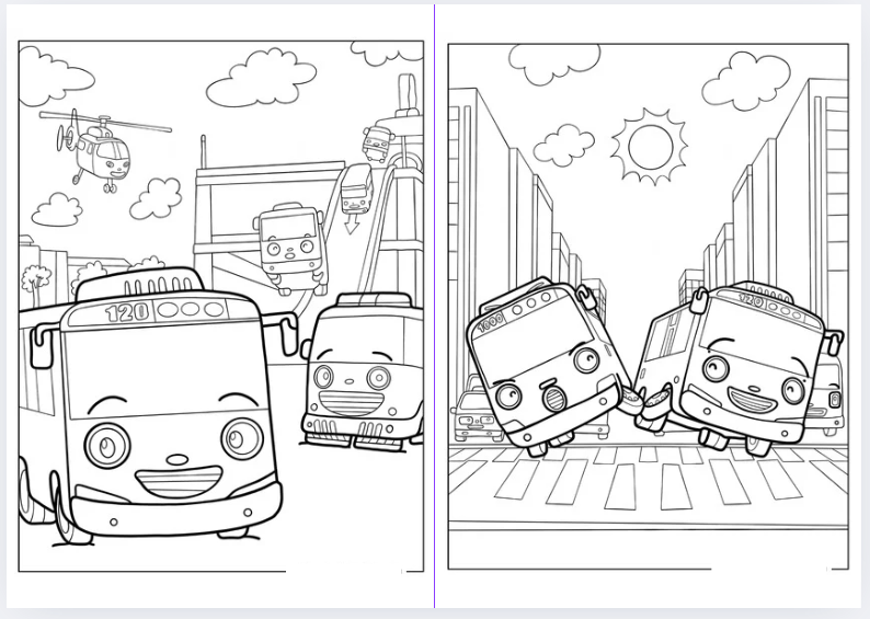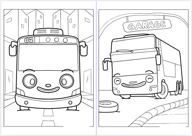 Libro para Colorear en PDF Tayo, el pequeño autobus