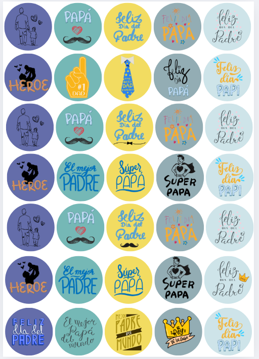 Una hoja tamaño A4 con 35 stickers redondos, cada uno con un diámetro de 4 cm, listos para imprimir y usar.