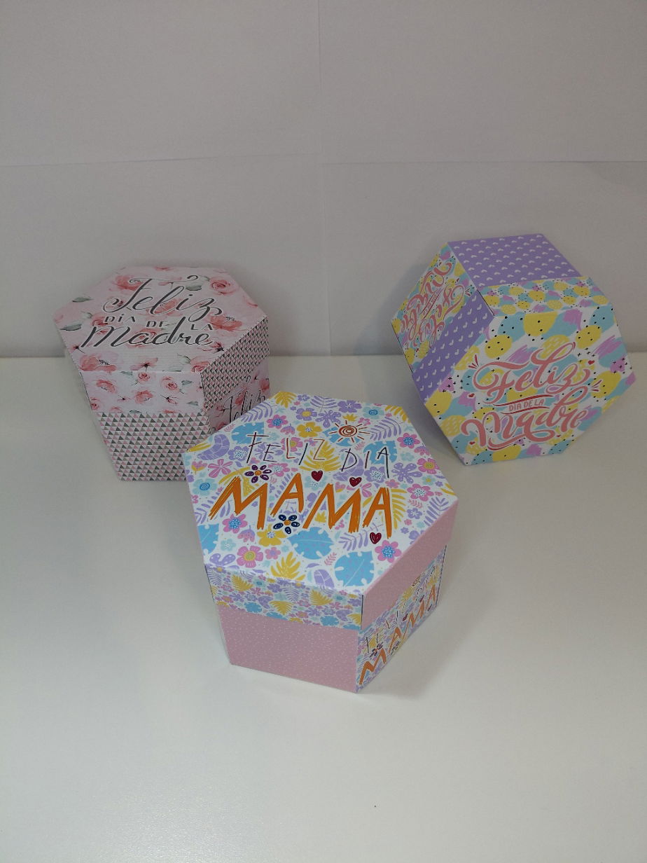 Original y elegante, la caja hexagonal es perfecta para darle un toque diferente a tu regalo. Su formato se destaca y es ideal para bombones, accesorios o pequeños objetos.